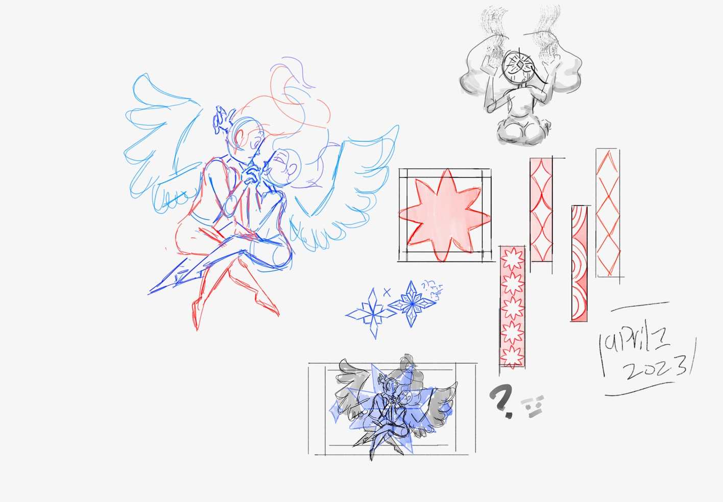 awesome. I used a lot of star imagery throughout my portfolio, namely the four pointed version. it represented a lot of things, and the placement of the forehead of the character was to represent the importance of the mind within this piece.