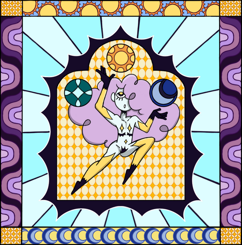 One of two painted pieces in the portfolio, and the first I made the year. My original intention was to paint every piece, but digital offered more in the way of exactness, which was important in trying to emulate a stain glass style.