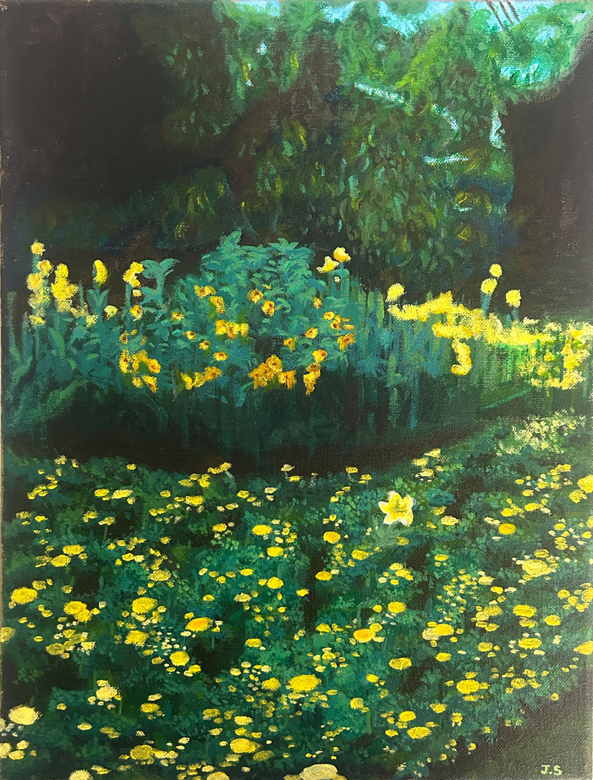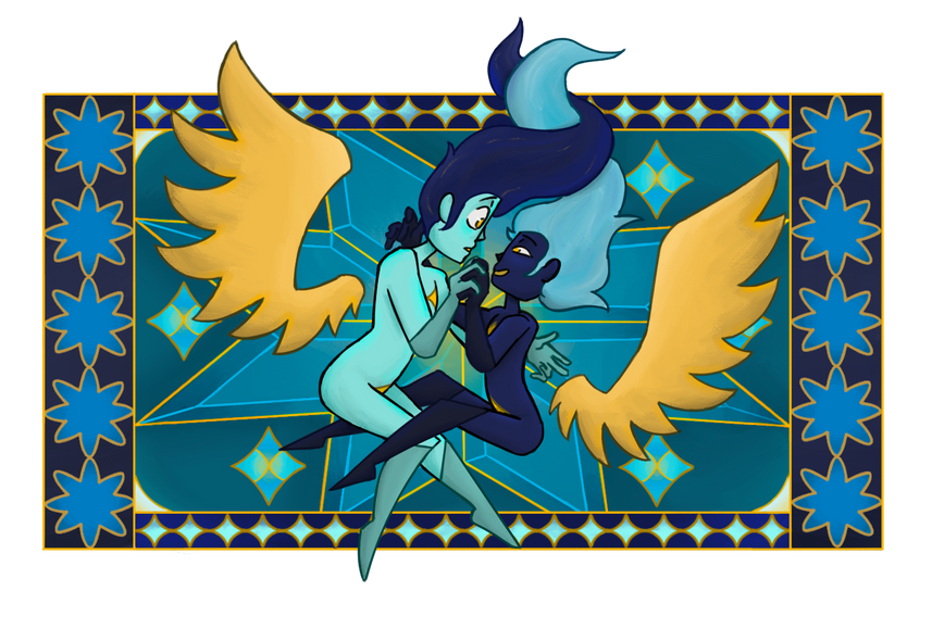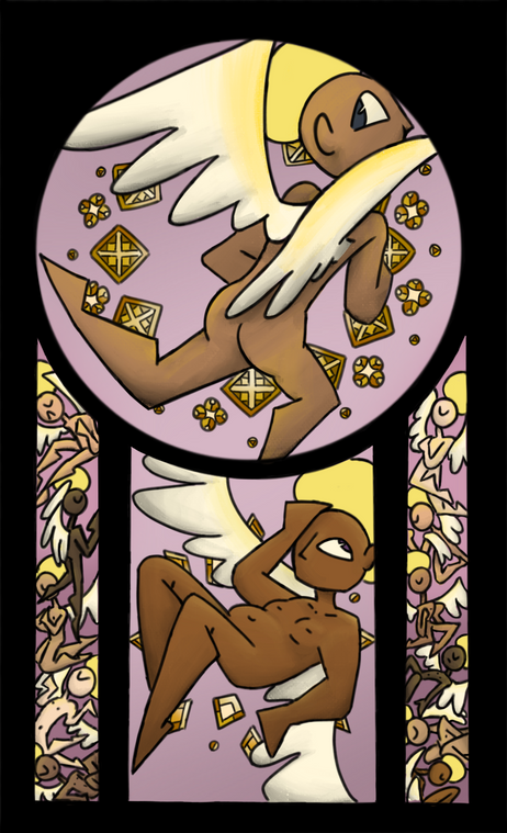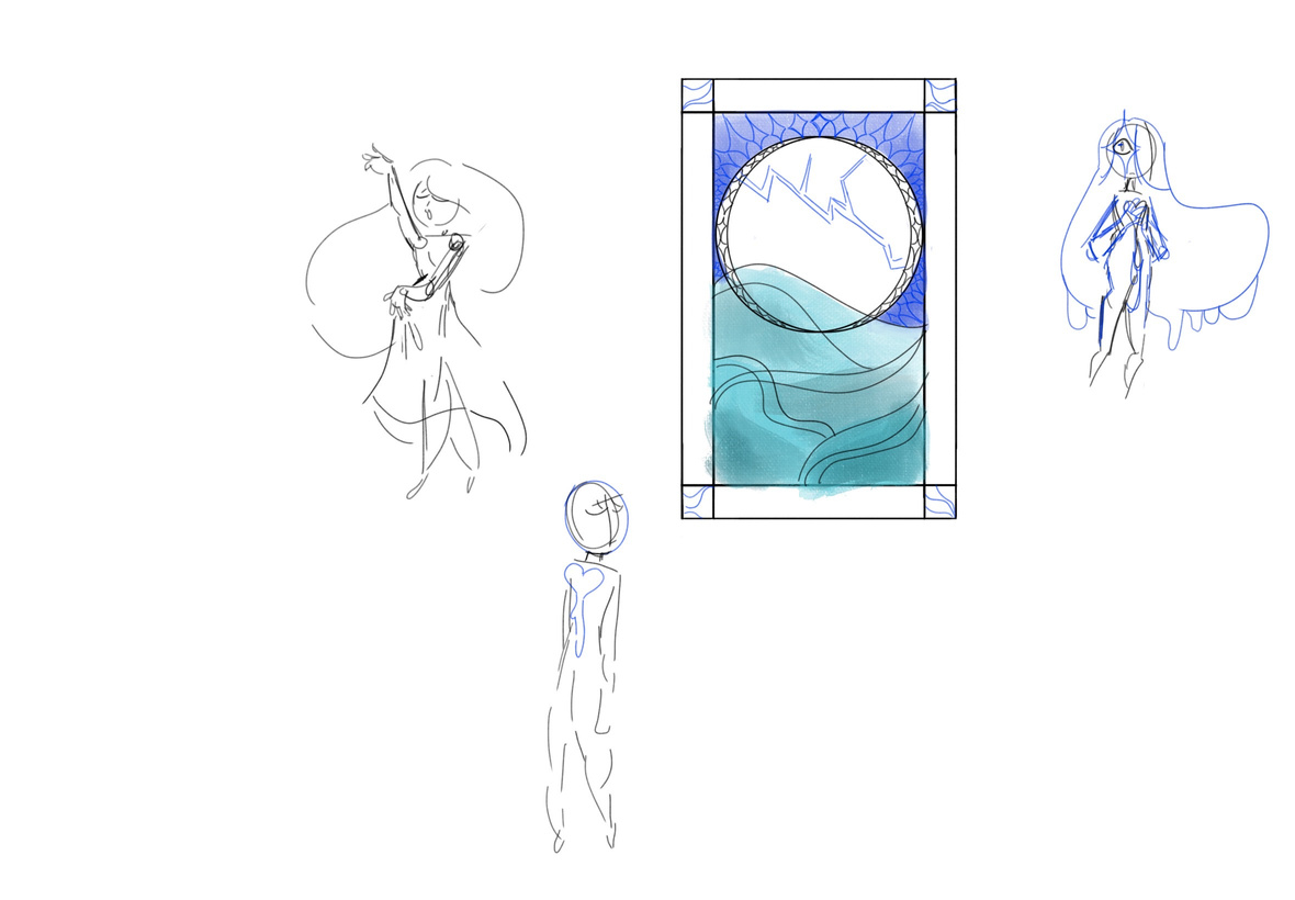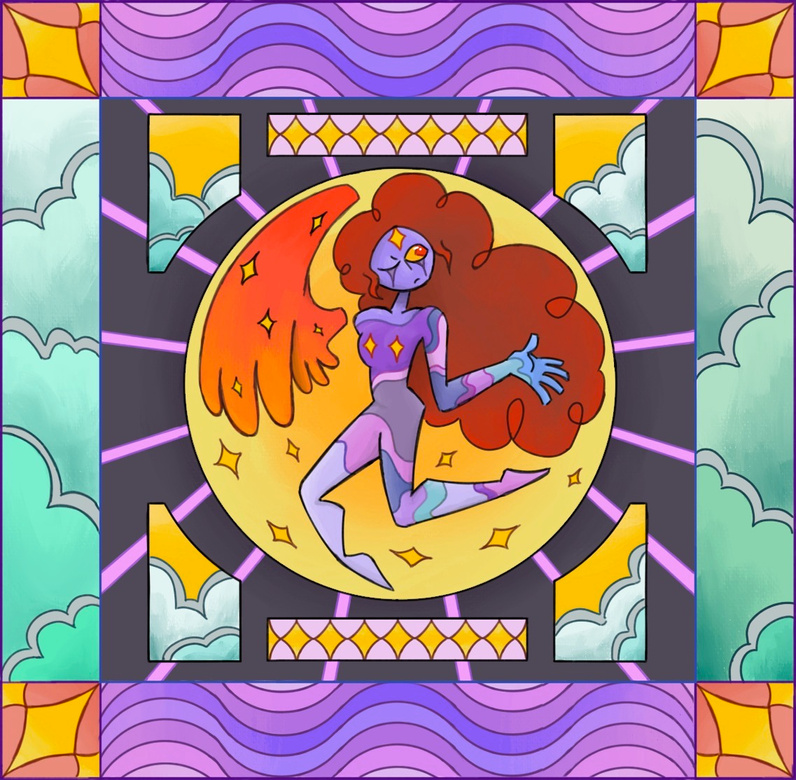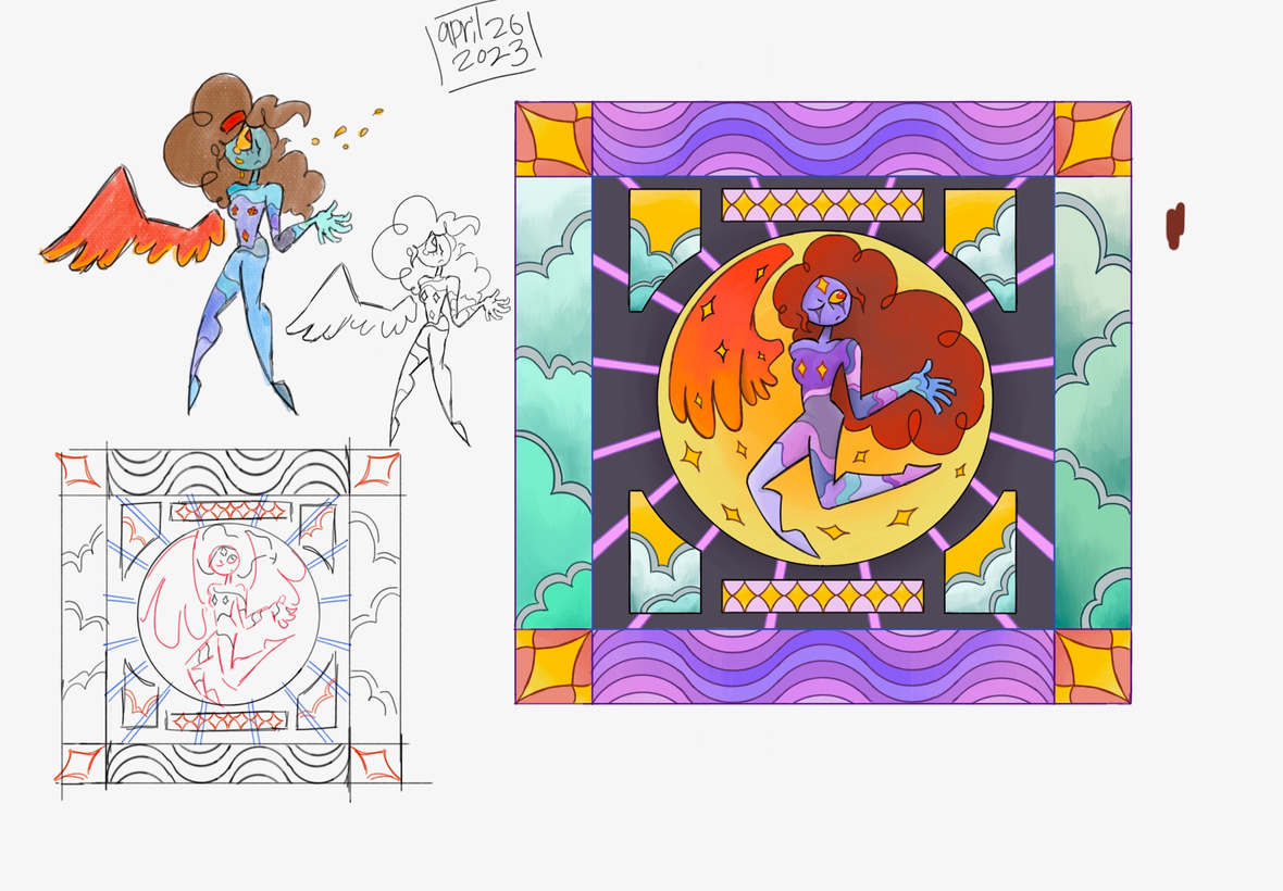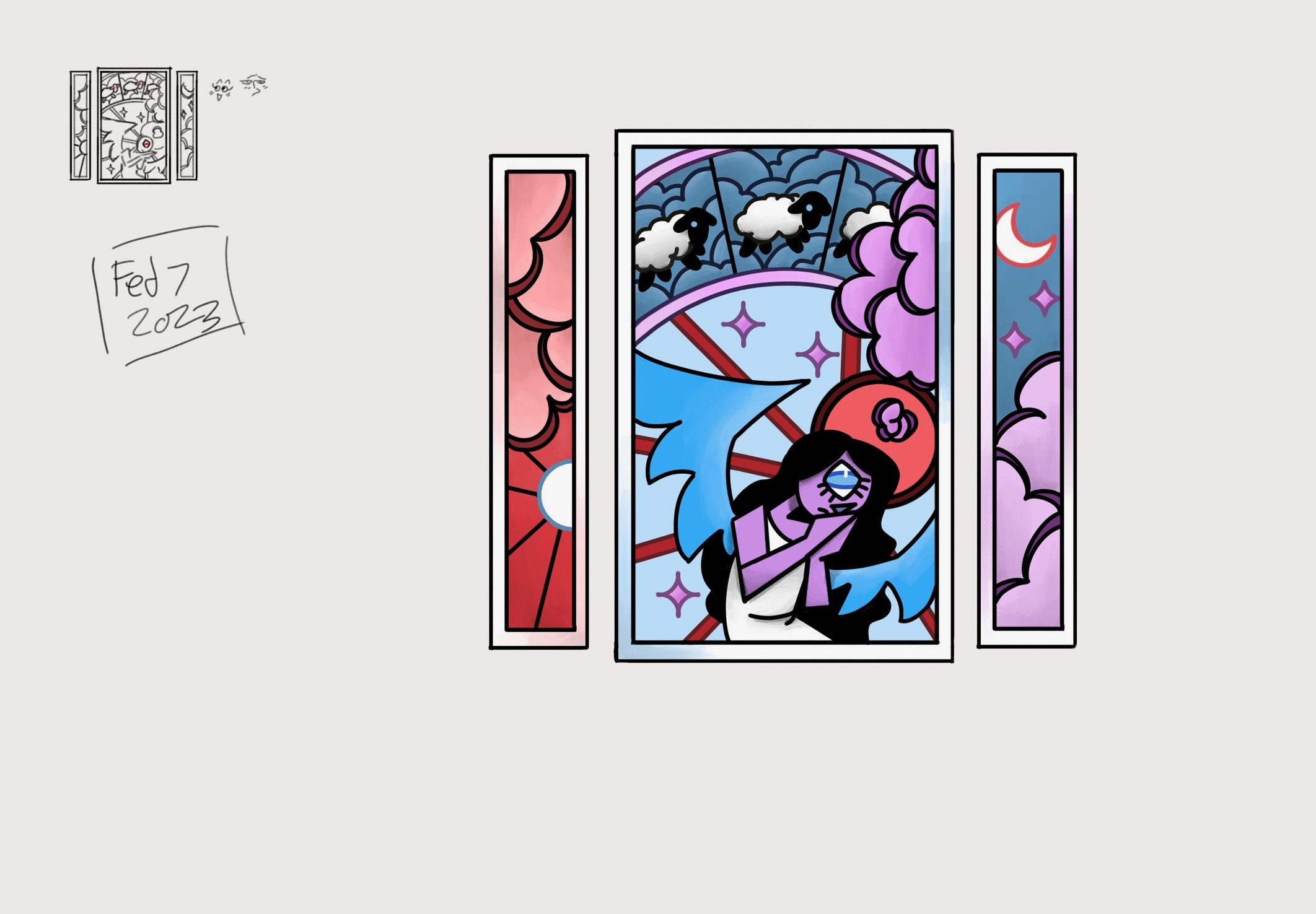 My portfolio was focused on the themes and style of stained glass. Stained glass has many themes that come to mind when you think of it; angels, godliness, purity. My idea was to contrast these expectations of what Christian centric stained glass usually presents as unequivocally good, by presenting my own themes that invert them. Things like a connection to nature, loss of purity, the beauty of a feminine body, and trauma. I learned a lot about art and how I can push the boundaries of my own art style with this portfolio, and I’m so glad I chose to do it primarily digitally, just to hammer home how much my art differs from the stain glass inspiration.