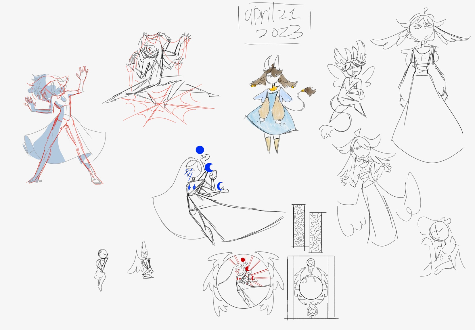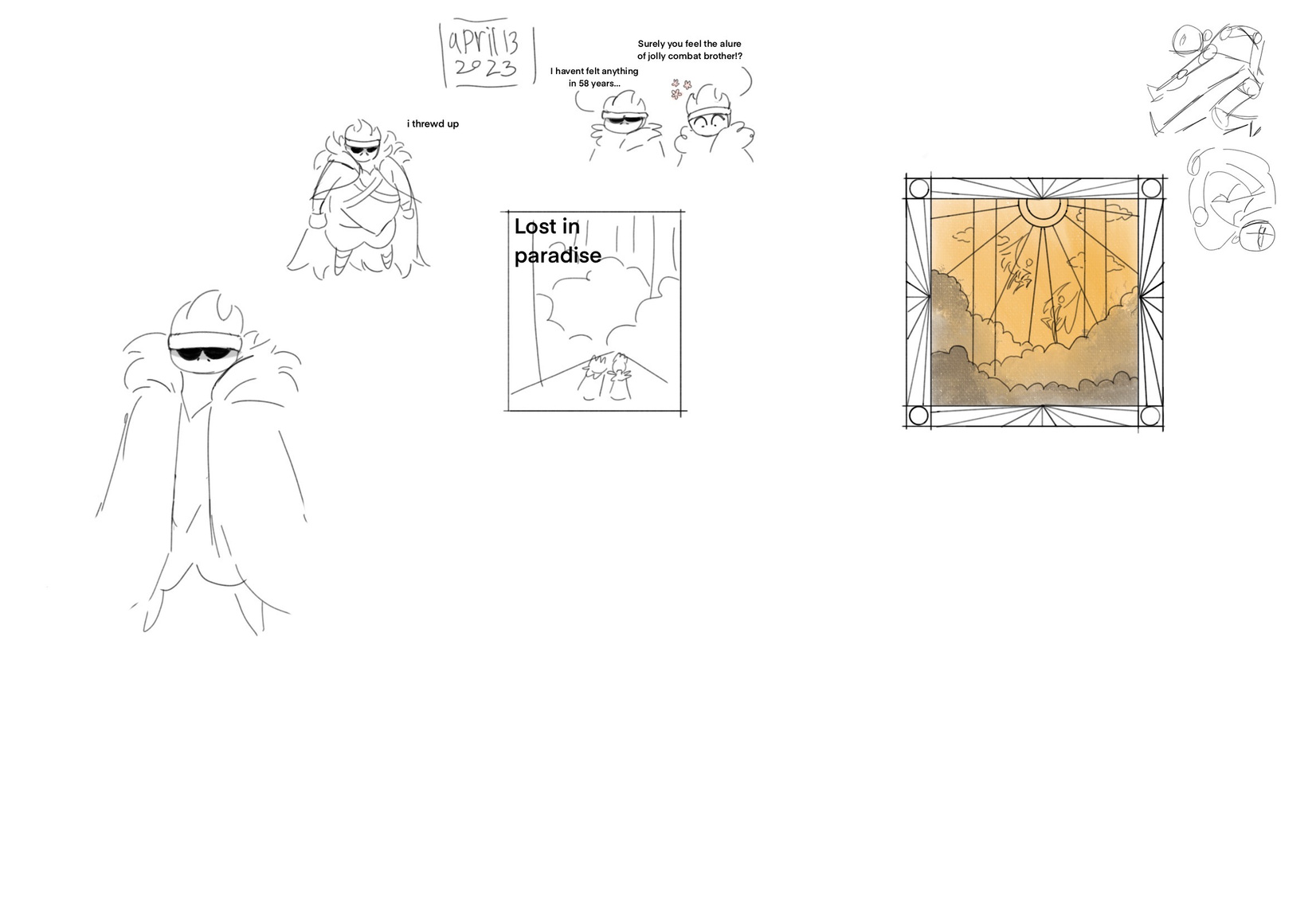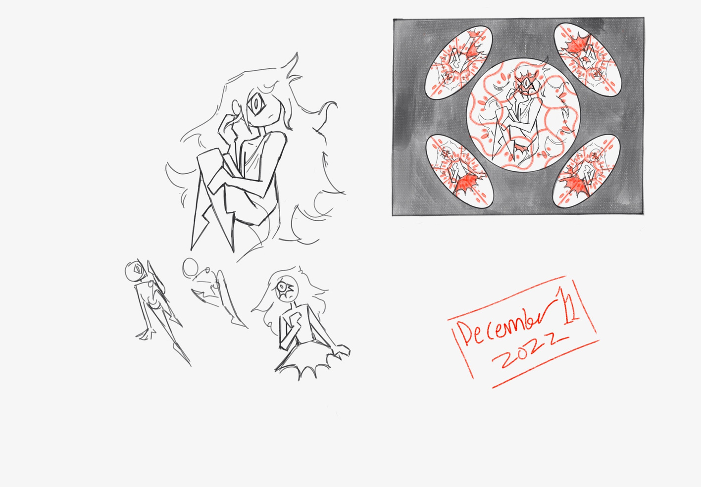 This was the first digital piece. I deliberated over this one for a very long time, it was hard to know what I wanted to incorporate, what it would mean about later pieces, how it would affect my later creative process- in a lot of ways it felt like the real first piece of my portfolio, at least to me. The claustrophobic feeling of the women trapped in the windows was the main idea, feeling trapped by the rose window. Hens the name. In a way, it's mostly about subservience, of being forced to not take up too much space. Weirdly this piece has a lot of stress wrapped up in it, but so do a lot of other pieces in my portfolio.