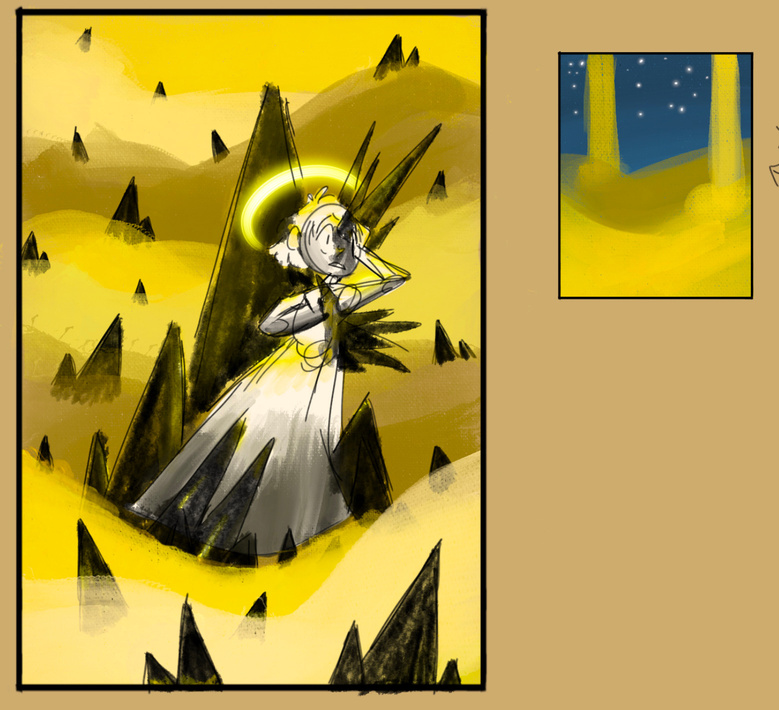 art, when I don't try to stretch outside of my comfort zone like my other piece. That's not to say I didn't try anything new with this one. The use of repeating star shapes within the doorway like shape behind the girl was the first time I had ever tried something like that, and it ended up very useful later in the portfolio.