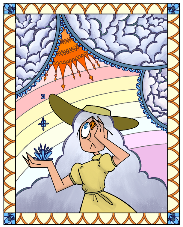 This was a piece made after two separate scrapped works in progress, so I was nervous for how the piece would fair. I ended up liking the result, though it does feel comparatively light in tone then the rest of my pieces, the girl wearing a sundress with the rainbow in the background, it's a bit more relaxing then the others, maybe even childish. Not that its bad, I think that in every one is a part of us that enjoys something a bit more childish.