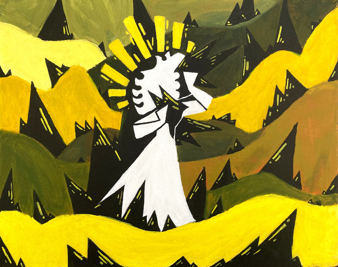 This was a piece still was very much in the "color block" stage of my portfolio. This originally was made in response to a prompt that challenged me to make a piece incorporating hands and feet. I ended up going for the idea of the lustrous and pure legs, being reached for by corrupt hands, all just barely not touching them. If I could change one thing about this piece in retrospect, I would add a border of some kind, I think it would make it all just that much better.